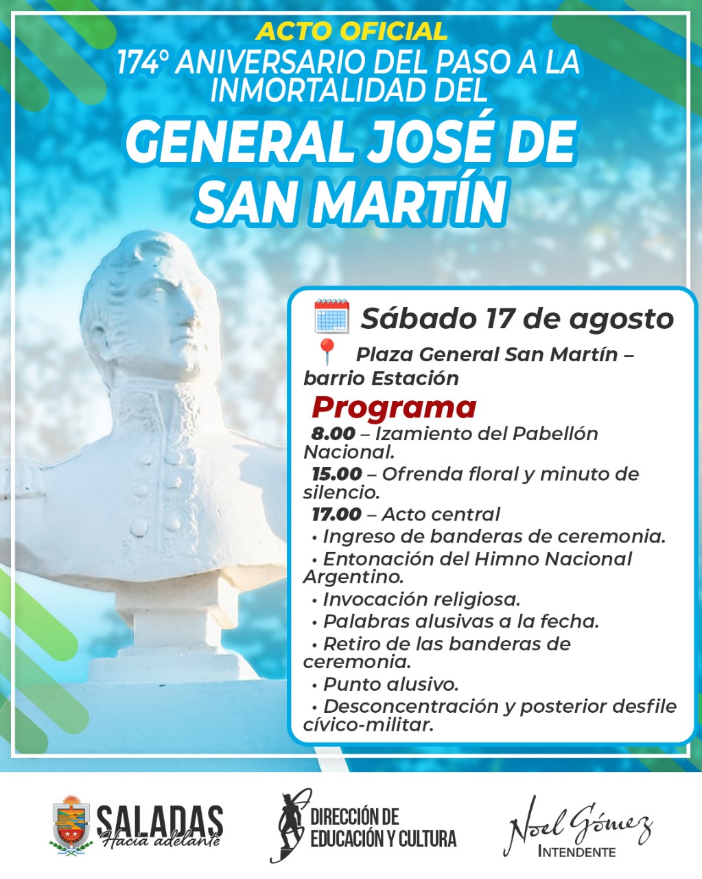 Saladas: Acto oficial por el 174° aniversario del Paso a la Inmortalidad del General José de San Martín
